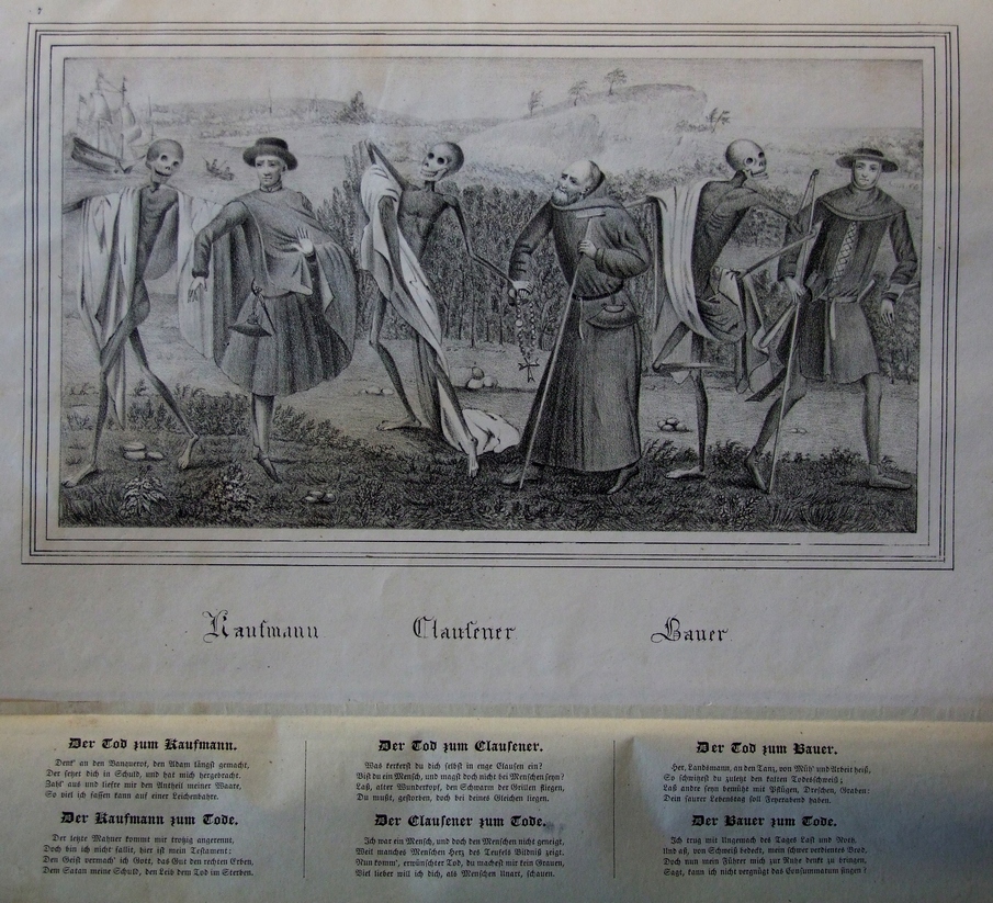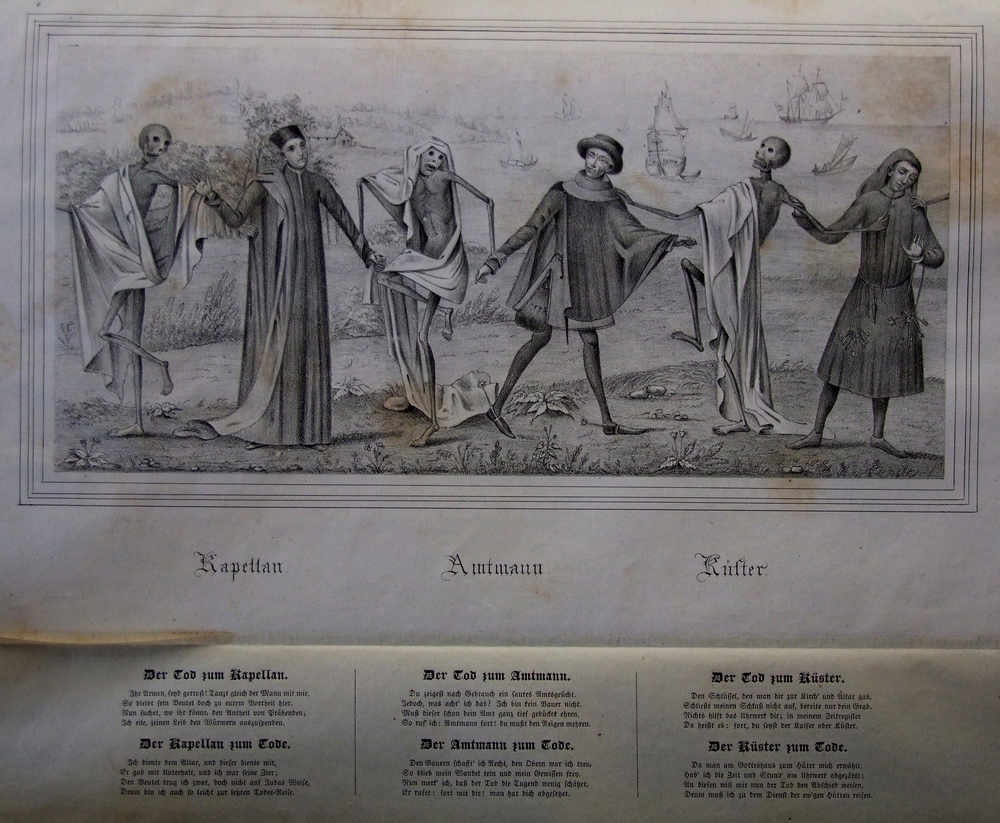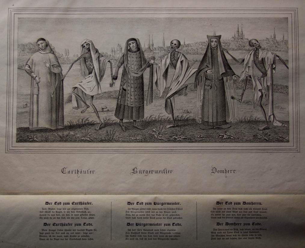 Il y eut un certain nombre de reproductions de la Danse macabre de l’église Sainte-Marie mais beaucoup ont été détruites ou perdues. Il y eut en particulier des lithographies et des gravures sur cuivre dont certaines ont été coloriées et qui ont été ajoutées à l’édition de Ludwig Suhl en 1783.